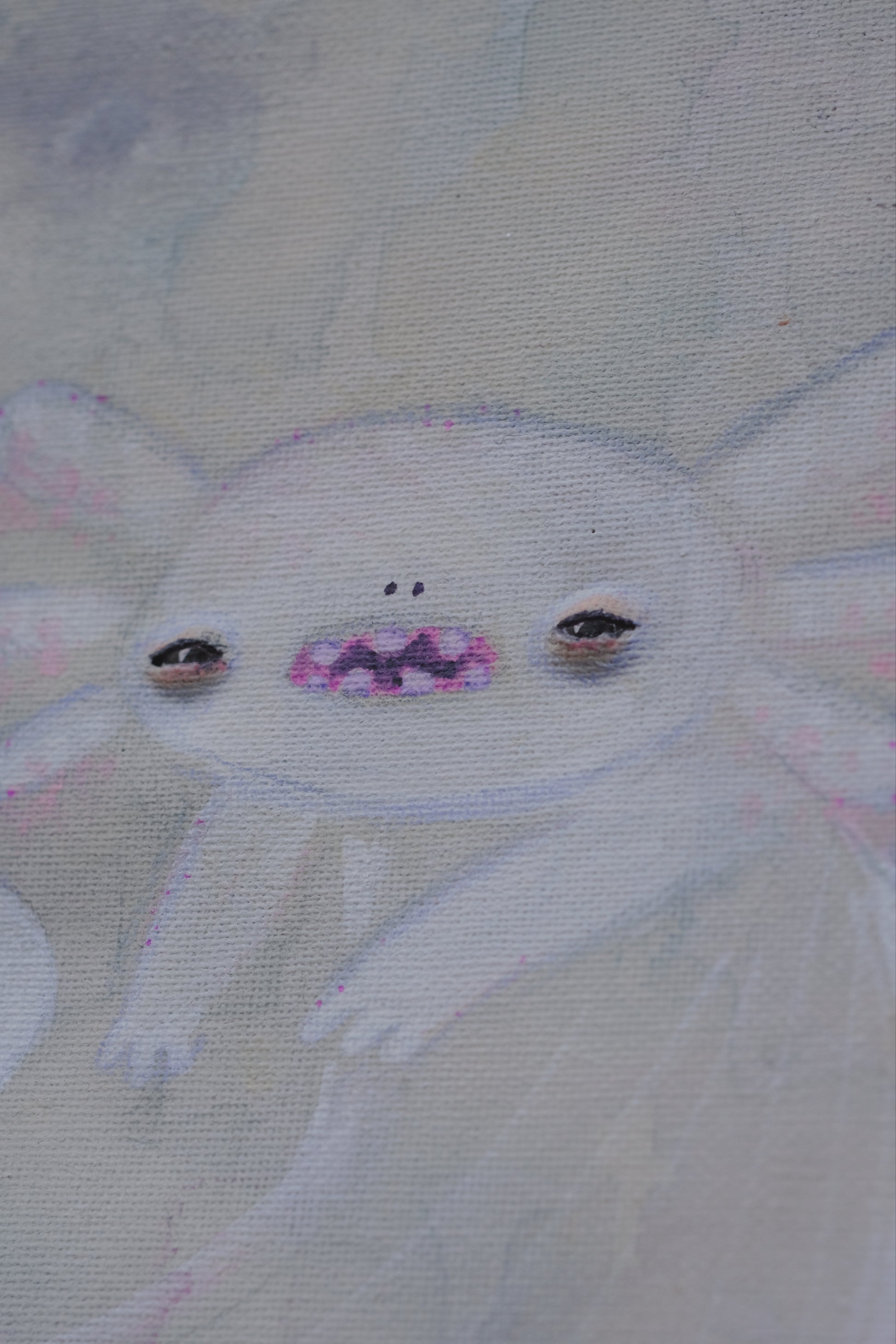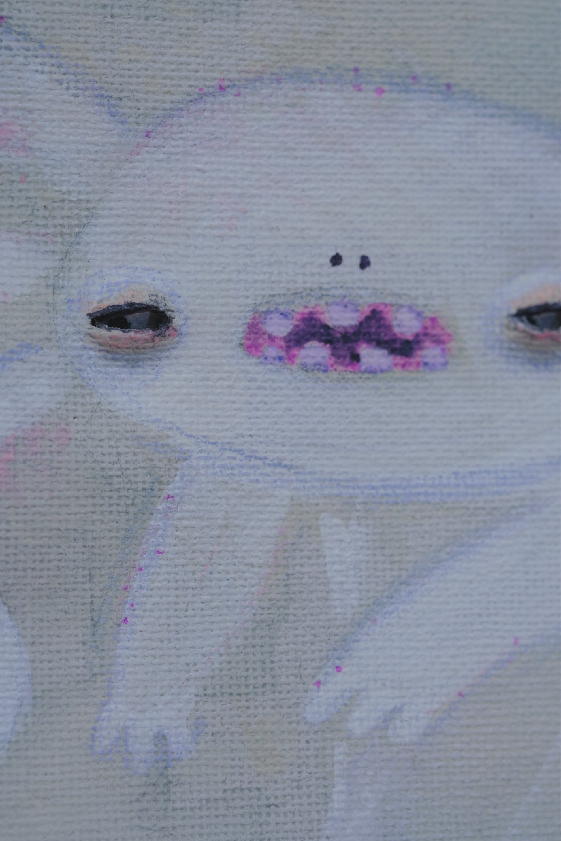 mixed media painting with glass eyes